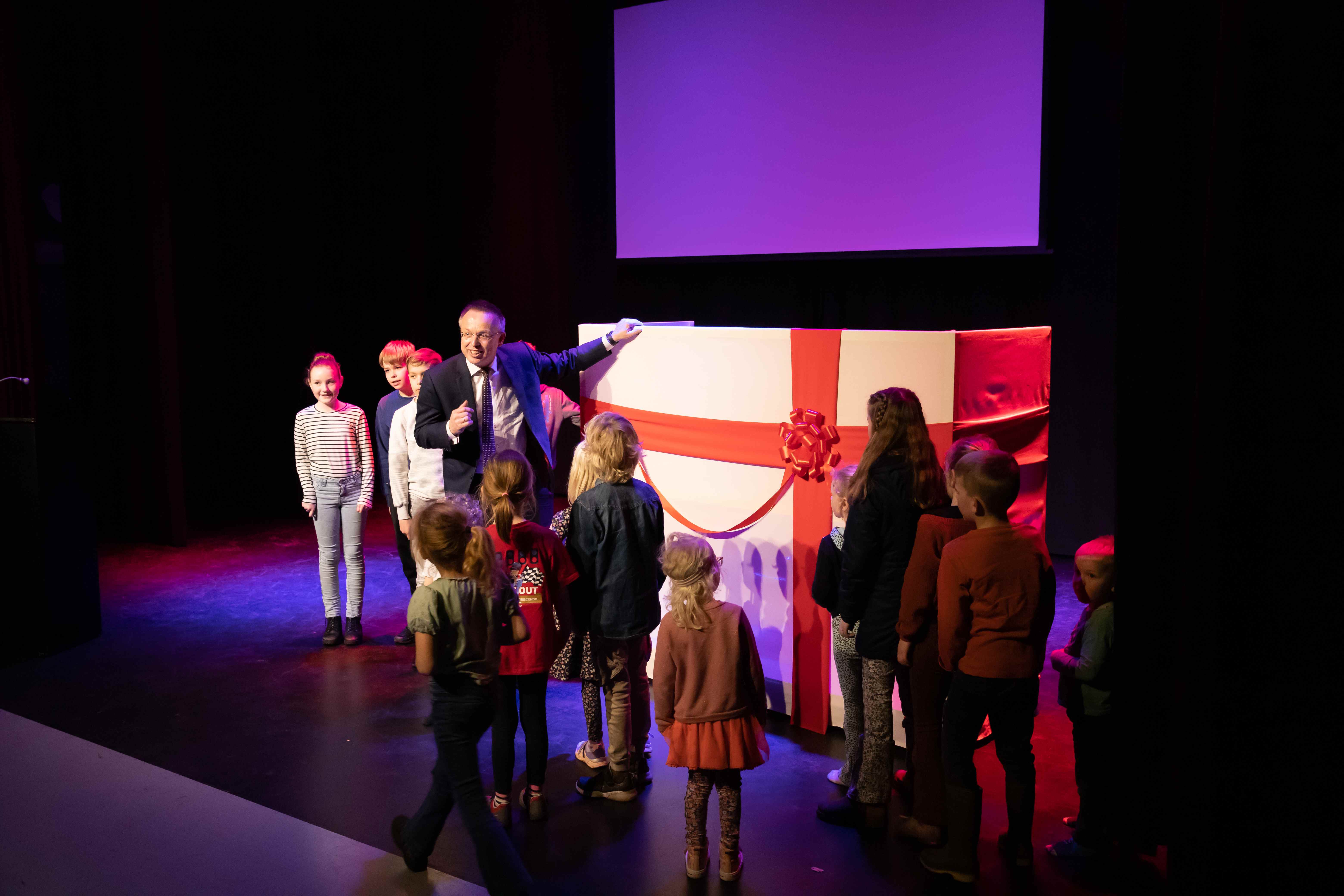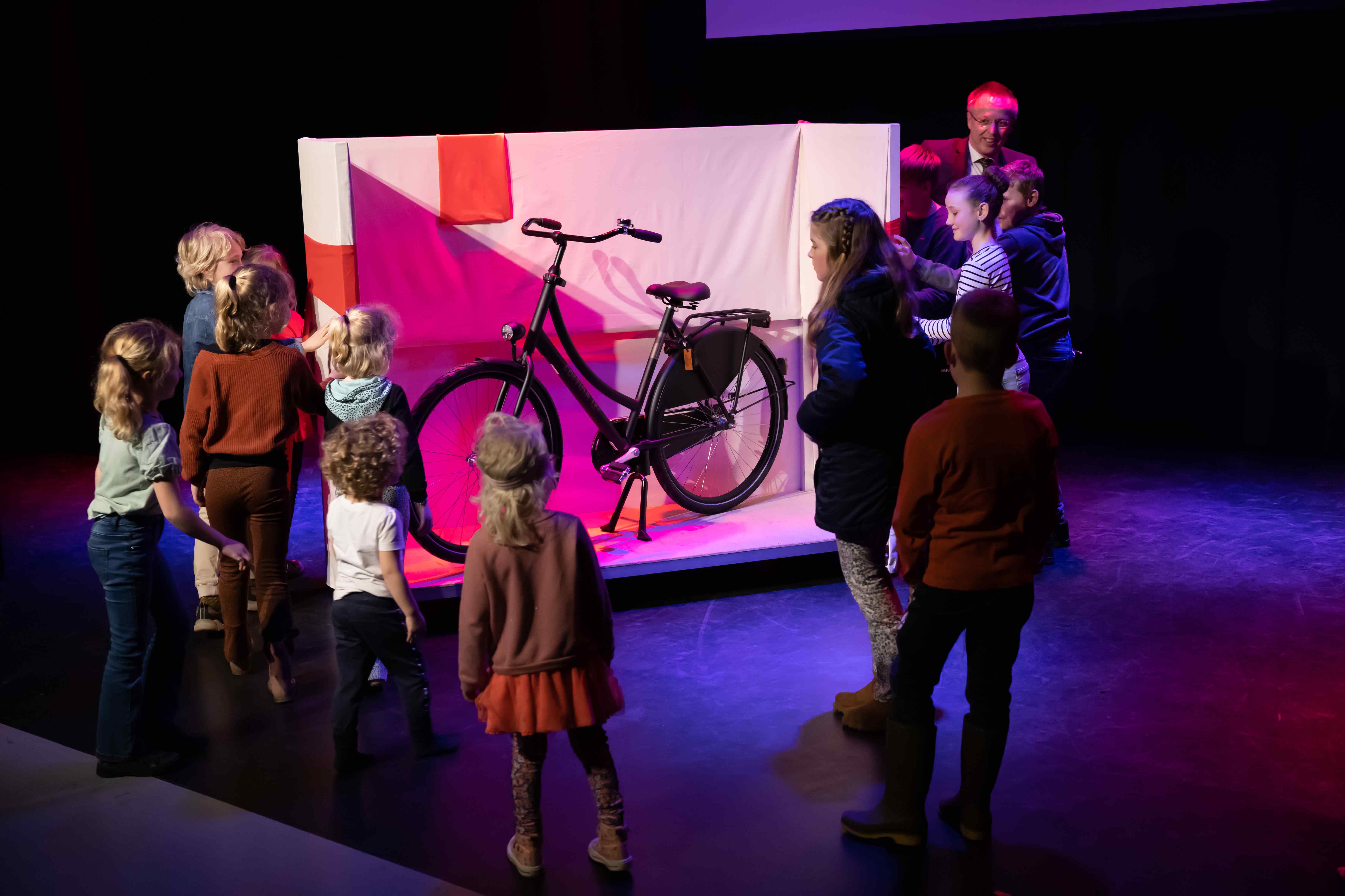 Samen met de aanwezige kinderen onthulde de heer Paas de eerste nieuwe fiets, welke achter een grote verpakking met rode strikt klaar stond. Hierna overhandigde hij de fiets aan onze voorzitter. Albertha bedankte de heer Paas voor de nieuwe fiets en zijn bijdrage aan het geheel. Zo ook voor de financiële bijdrage van het Prins Bernhard Cultuurfonds, waar de heer Paas voorzitter van is. Verder bedankte ze in het speciaal E-Bike Fyts specialist Surhuisterveen, Vancore Percussion Instruments en RN Machinebouw BV Drachten voor hun bijdrage aan de nieuwe fietsen en aangepaste sturen. Uiteraard was de aanschaf van de nieuwe fietsen ook niet gelukt met de steun van al onze sponsoren, vrienden van… en donateurs.