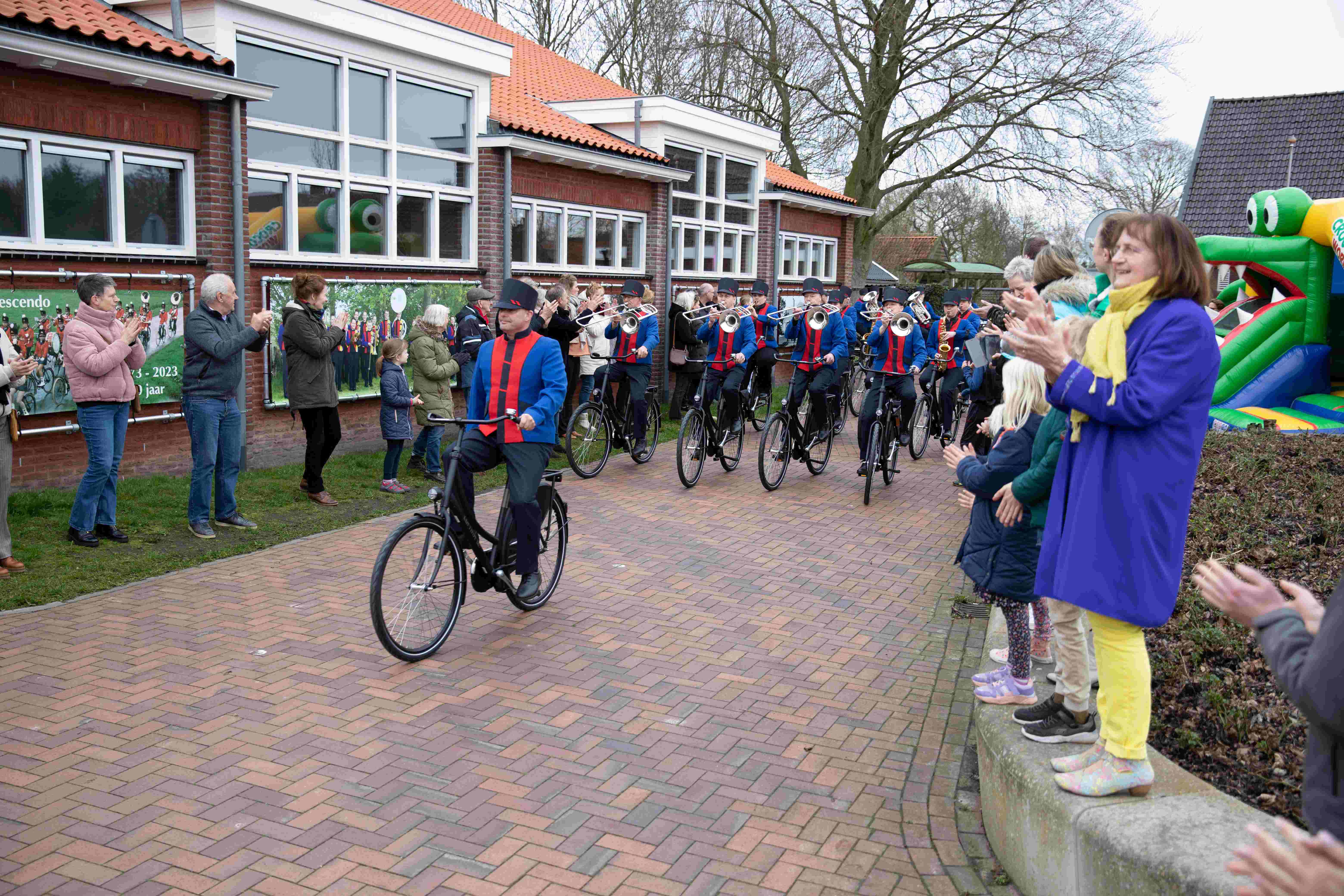 De feestelijke dag begon regenachtig en dreigde bijna in het water te vallen. Voor de gelegenheid was er een fietstocht georganiseerd waar uiteindelijk een 6-tal fietsers op af kwamen. Er waren drie stempelposten. Bij stempelpost 2, halverwege de fietstocht, op de boerderij van de familie Nieuwland, kregen de fietsers koffie, thee en wat lekkers. Daarnaast was Jeugdkorps Crescendo gevraagd om een muzikale bijdrage te leveren. Voor Jeugdkorps Crescendo was dit het eerste optreden van het jaar. Voor 3 leden was het zelfs hun eerste optreden en daarom extra spannend. Als verassing mocht het jeugdkorps na de fietstocht, nog een paar nummers ten gehore brengen in de grote zaal van het BaronTheater, voor leden en genodigden van Crescendo. De zaal zat vol en onder leiding van maître Sita Helmholt bracht de jeugd de feeststemming er helemaal in.