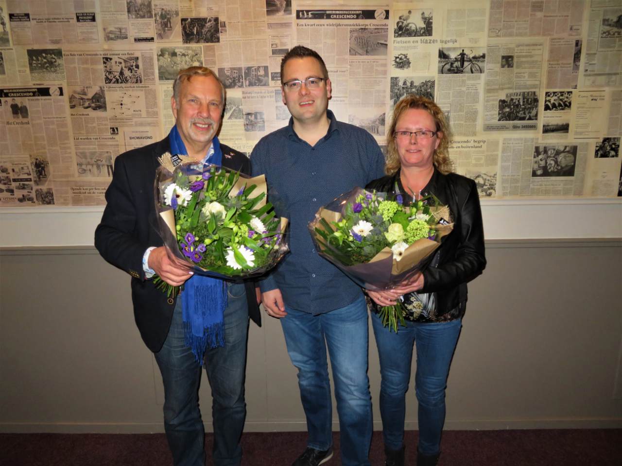Afgelopen vrijdag (15-03-2019) was het in het BaronTheater in Opende weer tijd voor de leden van Bicycle Showband Crescendo om bij elkaar te komen voor de jaarlijkse ledenvergadering. Na de gebruikelijke punten worden er aan het einde (vaak) bloemen en speldjes uitgedeeld aan de jubilarissen. Dit jaar zijn twee leden in totaal honderd(!) jaar lid van de vereniging, namelijk Liesbeth Benthem-Terpstra (40 jaar) en Fokko Tolsma (60 jaar).