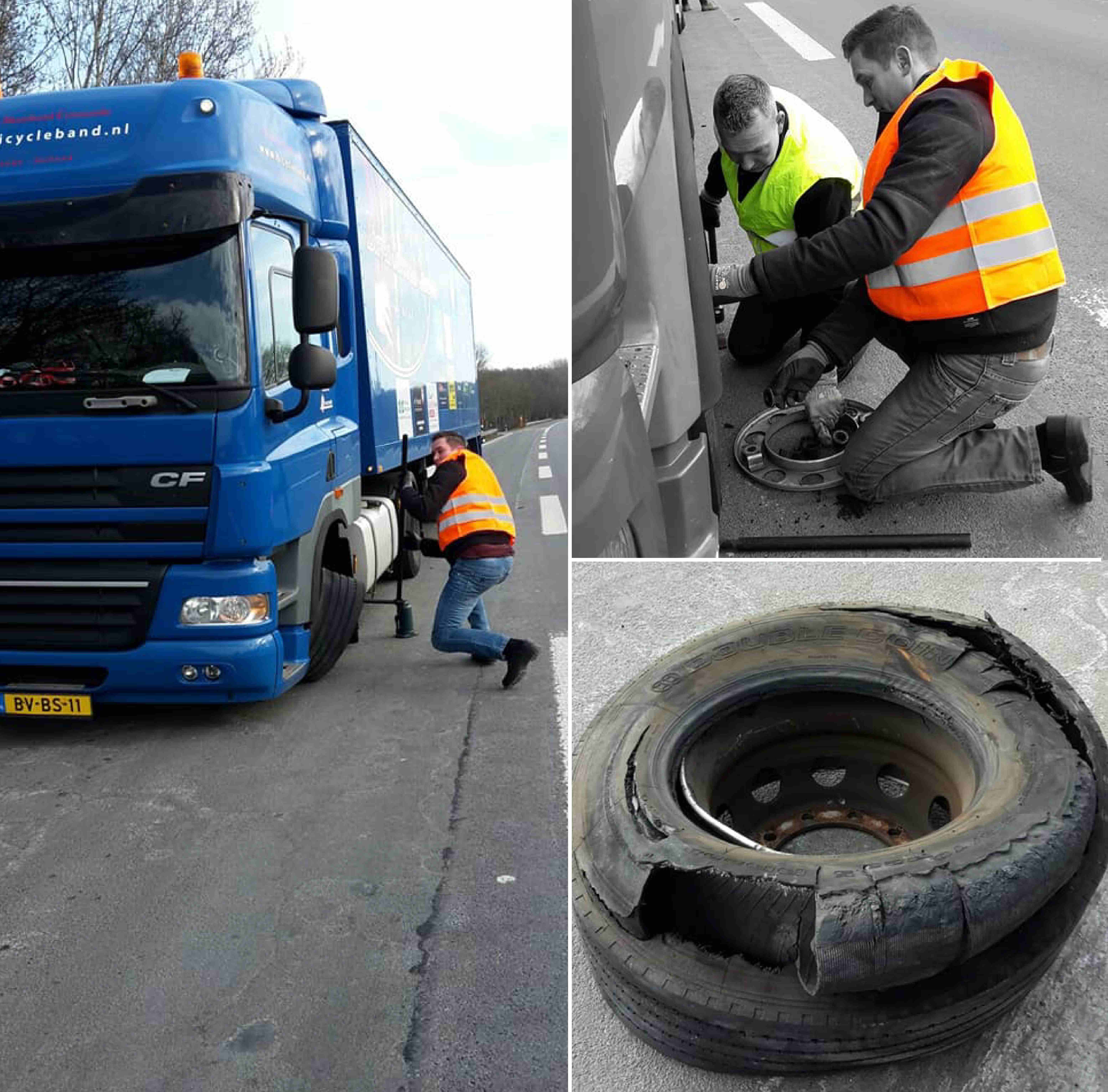 Of het moment in 2018 toen we moesten wachten op de fietsen in Oberhausen, vanwege een klapband met onze vrachtwagen. Marcel Bouma had de truck gelukkig snel aan de kant van de weg om het wiel te verwisselen, hierdoor konden we op tijd optreden.