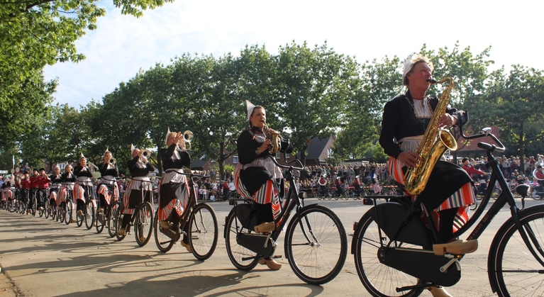 Na de presentatie van de korpsen, was het wachten op de start van de parade met versierde wagens, dit was tevens een mooi moment om door de lokale media te worden geïnterviewd. Langs de kant van de parade was veel enthousiast publiek, met af en toe een bekend gezicht ertussen. Zodra de parade was afgelopen was het voor een aantal leden nog erg stressen, want deze toppers deden namelijk niet één maar twee shows! Met de haren weer in de twee vlechten en de klompen aan, ging Crescendo op met de Formule 1 show. Helaas verliep de show niet vlekkeloos want een botsing tussen twee muzikanten was niet te voorkomen, gelukkig liep het goed af met alleen een scheef staand stuur.